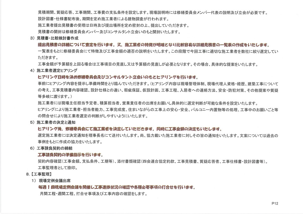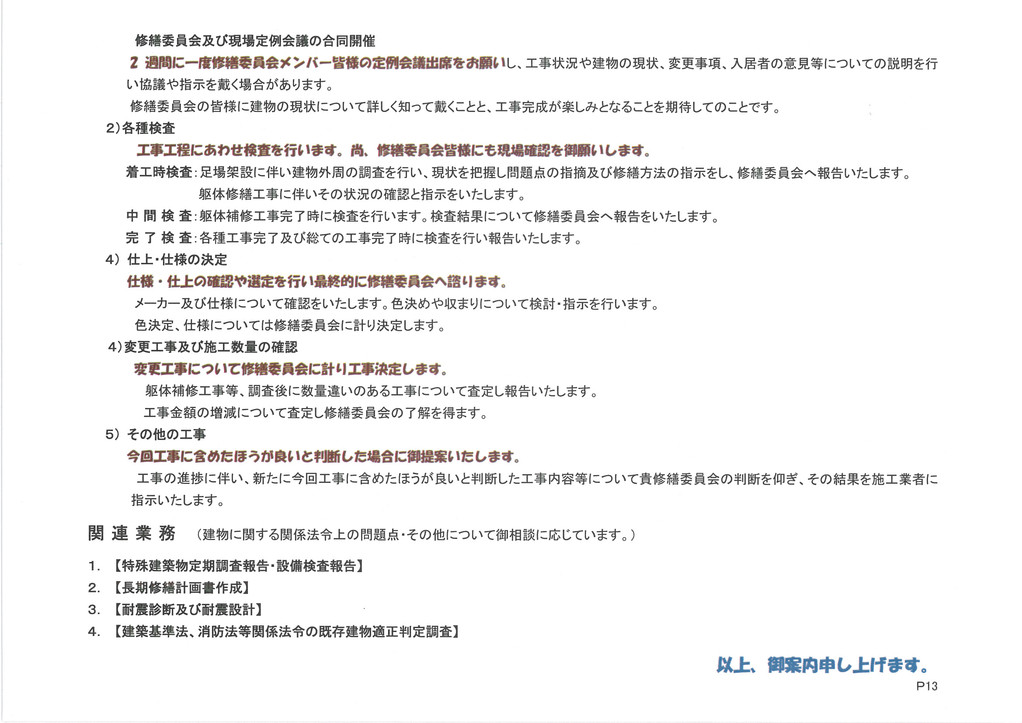 | コンサルタント | 大規模修繕工事 (資産維持向上提 案) | |